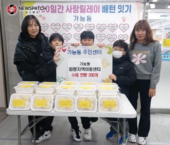 [ 뉴스패치 이재은 기자 ] 의정부시 가능동주민센터는 12월 23일 화평지역아동센터가 어려운 이웃을 위해 직접 만든 찐빵 200개를 기부했다고 밝혔다.