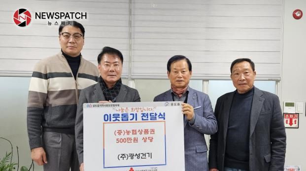 [ 뉴스패치 이재은 기자 ] 광성건기㈜는 지난 23일 저소득 가정을 위한 농협상품권 500만원(5만원권 100매) 상당을 기탁했다.