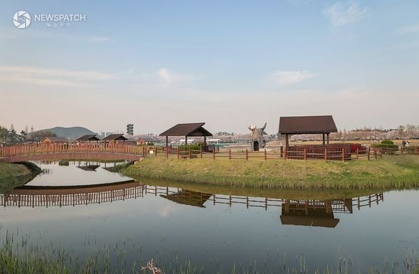 시흥시 갯골생태공원은 경기도 유일의 내만 갯골과 옛 염전의 문화유산을 간직한 친환경 공간이다.4월중순의 갯골생태공원은 벚꽃 터널의 화사함과.수선화의 따뜻함을 느낄수 있다.랜드마크로는 목조전망대로 만든 흔들전망대가 공원전체와 갯골의 구불구불한 물길을 한눈에 담을 수 있는 생태공원 이다. [사진=시흥시]